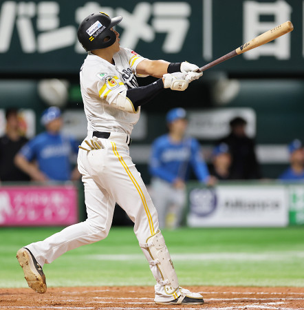 プロ野球CS。ソフトバンクが投手戦を制した。8回1死一、二塁から柳田(写真)の3ランで均衡を破った。有原は走者を出しながらも粘って6回無失点に抑え、救援陣も好投し零封=16日、みずほPayPay 【時事通信社】