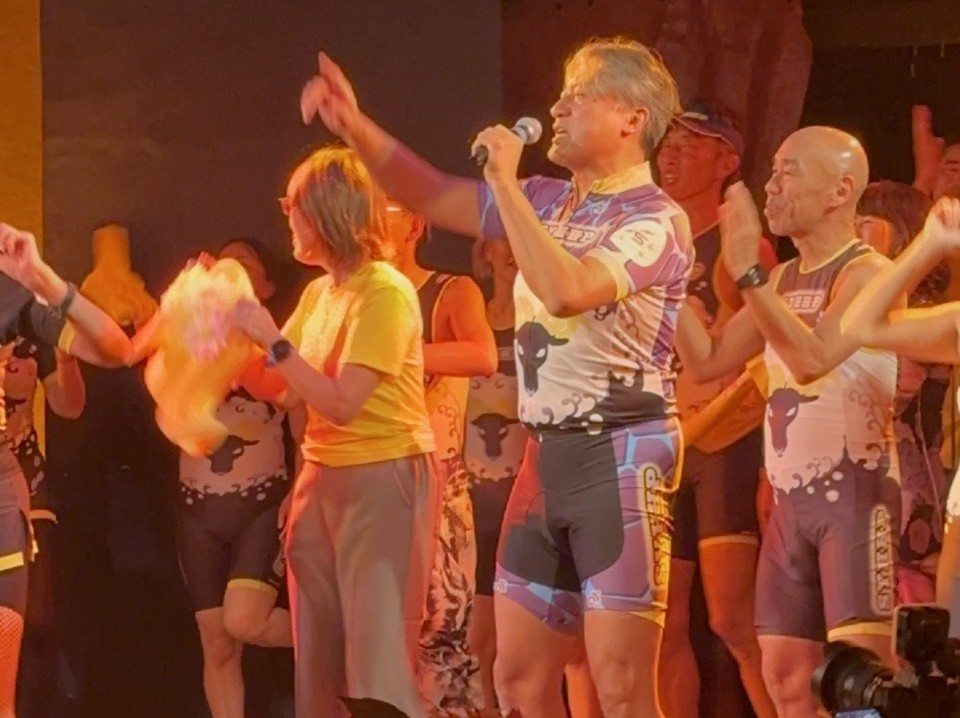 ピックルボールの体験イベントに参加した陸上のサニブラウン・ハキーム(後列左端)、バドミントンの桃田賢斗(同右端)ら。子どもたちとの対戦で白熱した=2日、東京都江東区 【時事通信社】
