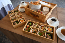 夜のメニューは、「フォアグラとトリュフのソースのオムレツ」(780円)、「モッツァレラのムース」(420円)、「目の前の中華の店『良友酒家』のシュウマイ」(495円)、「本日のカルパッチョ」(880円)、「カレーパン」(210円)など。各種弁当(650円~)も販売する。食べ飲み放題プラン(5,000円)、ディナーコース(6,800円)も用意し、2階は貸し切り利用にも対応する。