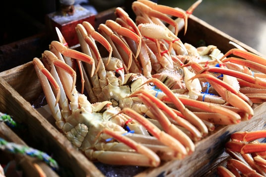 かに道楽のルーツである兵庫県北部の但馬(たじま)地域は、日本有数のズワイガニの水揚げ量を誇ります。爪に付けられたタグは、地物の証。当地で獲れるズワイガニは「松葉がに」と呼ばれ、11月7日~3月20日の限られた期間にしか漁がおこなわれない、貴重な自然の恵みです。素材の旨さを余すことなくお届けするため、当社には各分野のプロフェッショナルが在籍しています。