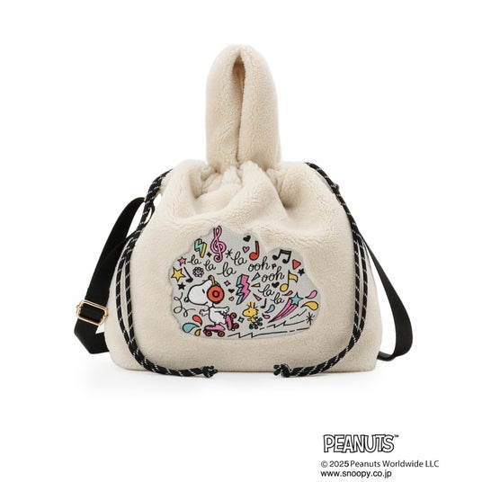 この度グローブでは、これからの季節にぴったりのもこもこボア素材を使用したPEANUTSコラボデザインバッグを発売いたします。スヌーピーと仲間たちのかわいらしい刺繍アートを4種類使用したスペシャルアイテムです。