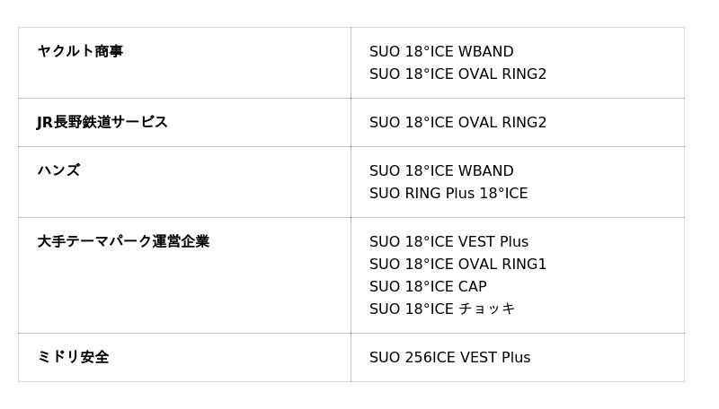 当社製品のSUOは、ヤクルト商事様、JR長野鉄道サービス様、ハンズ様、ミドリ安全様をはじめ、大手テーマパーク運営企業様など、多くの企業様にご導入・ご導入予定をいただいております。