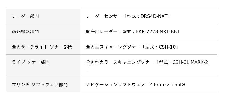 本賞は、毎年秋に開催する表彰制度で、その年に発売された舶用電子機器の中から、デザイン・性能・信頼性に優れた商品をNMEAメンバーの投票によって選出するものです。2025年度は、以下の5部門で最優秀商品賞を受賞しました。