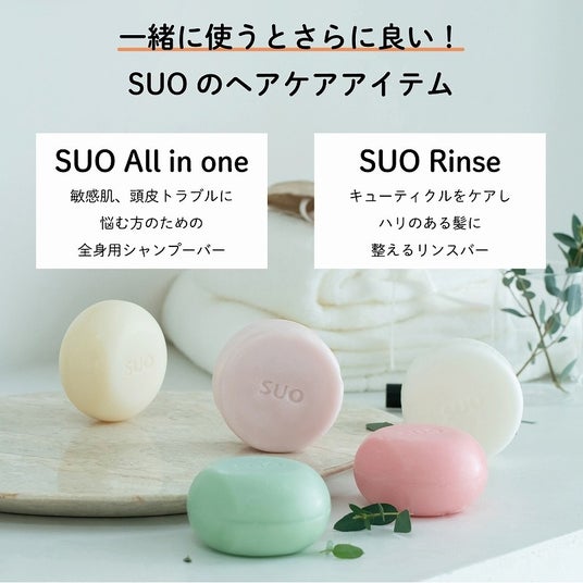 一緒に使うとさらに良い!All in oneだけでは物足りないという方は、SUO Rinseと一緒にお使いください。