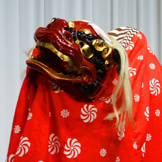 獅子に頭を噛んでもらうと1年間病気にならずに済むという言い伝えも。みなさまの健康を願って獅子が会場内を廻ります。
