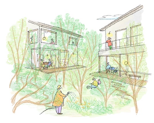 「木立の家」に住むということは、 木々とともに歳月を重ね、まちの風景を少しずつ育てていくこと。 そんな“育てる暮らし”に共感してくれる人と、この場所をつくっていきたいと考えております。