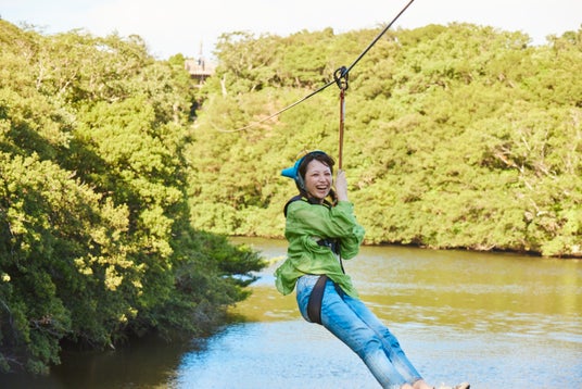 8mもの高さがあるコースなど本格的なアクティビティが楽しめるアスレチック!難易度がどんどん上がる3つのコースをすべてクリアできるかな?