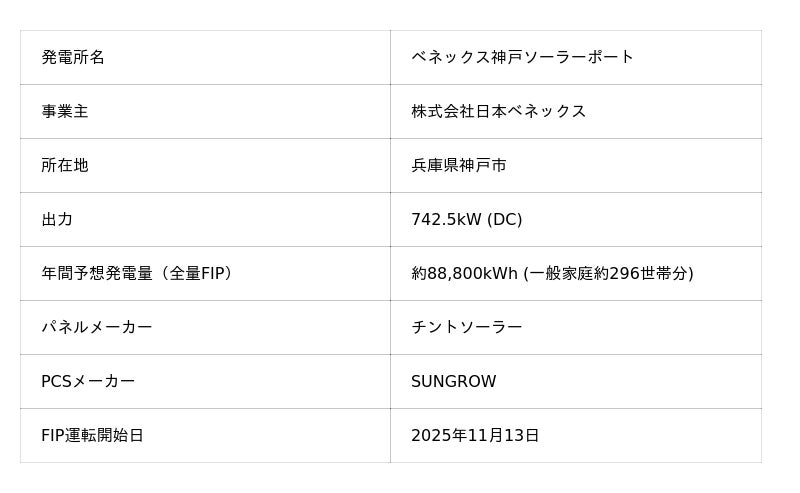 光発電所「ベネックス神戸ソーラーポート」(以下「本発電所」)を設置し、このたび運転を開始い