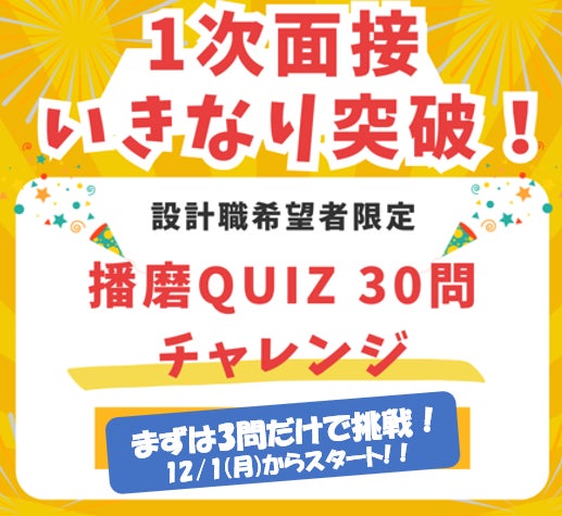 企画名称: 【 設計職志望限定 】 1次面接いきなり突破!播磨Quiz30問チャレンジ!