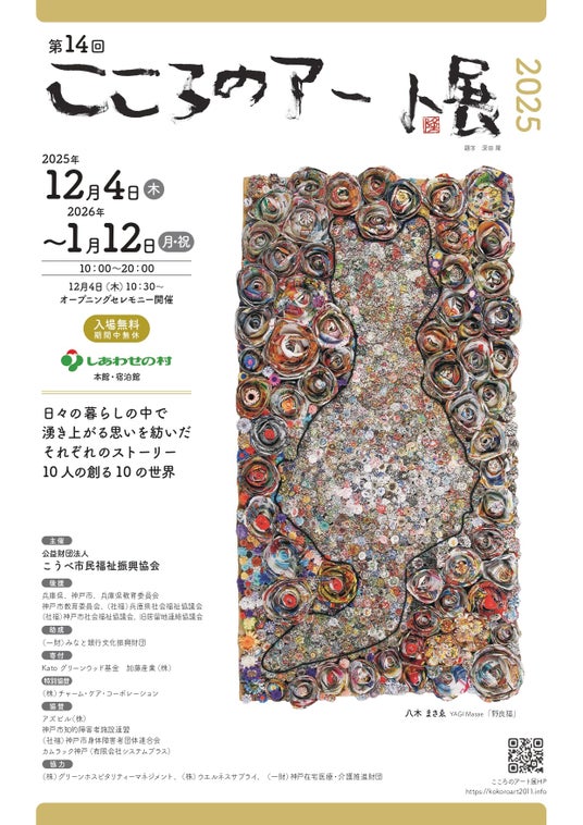 「こころのアート展」は、ソーシャルインクルージョンの実現を目指す総合福祉ゾーン「しあわせの村」で、多くの方に素晴らしい作品を鑑賞いただくことにより、障がい者の個性が発揮される分野が広がり、より豊かに共に生きることのできる社会の実現に役立つことを目的として開催します。