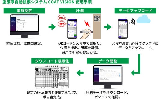 現場作業負担を約70%削減!塗膜厚自動帳票システム「COAT VISION(コートビジョン)」リリースのお知らせ~NETIS申請中・レンタル開始~