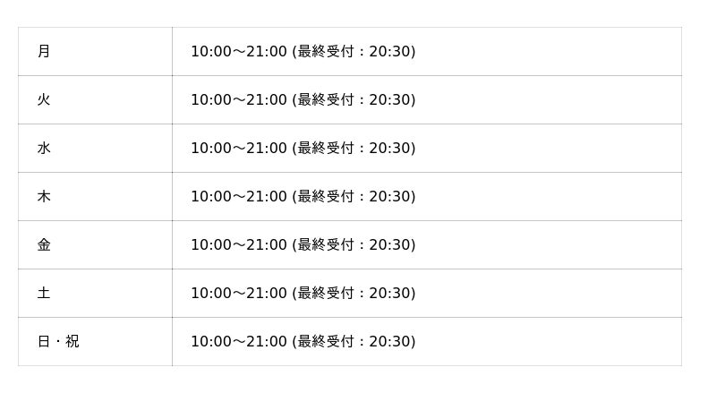 メンズ眉毛サロン 眉ラボ 吉祥寺店 の営業時間は以下の通りです。