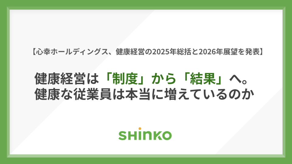 心幸ホールディングス株式会社(本社:兵庫県尼崎市、代表取締役:山崎 忠、以下、心幸ホールディングス)は、グループ横断で実施してきた調査結果および現場支援の知見をもとに、2025年の健康経営・企業向け健康支援業界の動向を総括するとともに、2026年に向けた展望を発表いたしました。