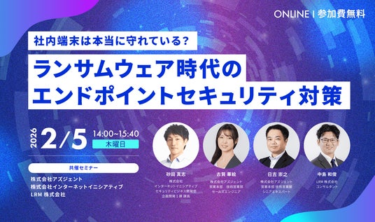 セキュリティ教育クラウド「セキュリオ」を提供するLRM株式会社(本社:兵庫県神戸市、代表取締役:幸松哲也)は、ランサムウェア時代のエンドポイントセキュリティ対策をテーマとしたウェビナーを、2月5日(木)に開催いたします。