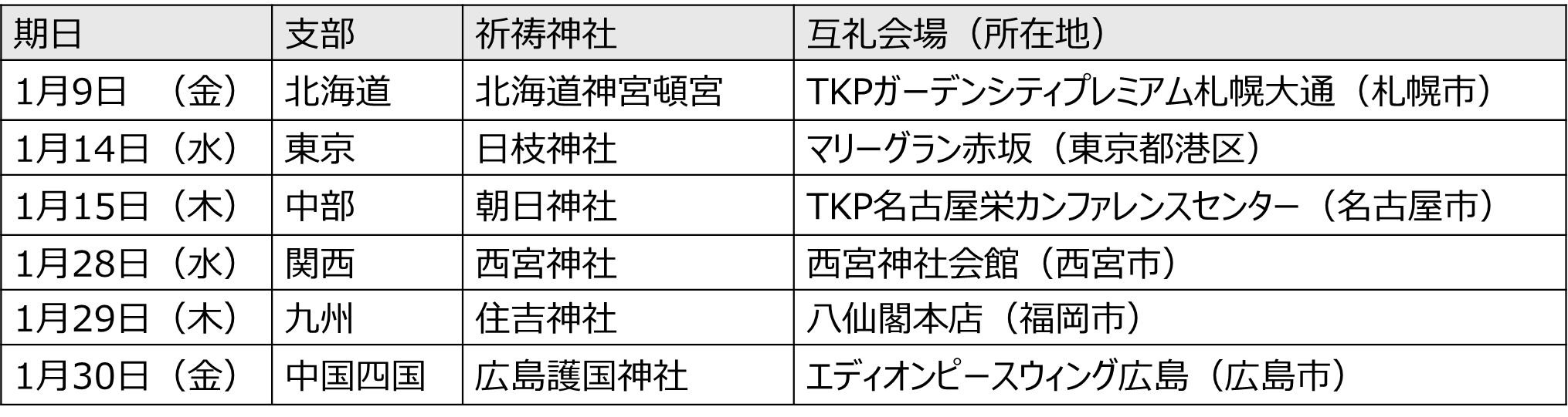 本年も2026年1月9日から1月30日にかけて全国6支部で開催し、当社社員や各地域の協力会会員の方々が参列しました。また祈願祭の後には、新年の挨拶と情報交換を行う互礼会(ごれいかい)を開催しました。