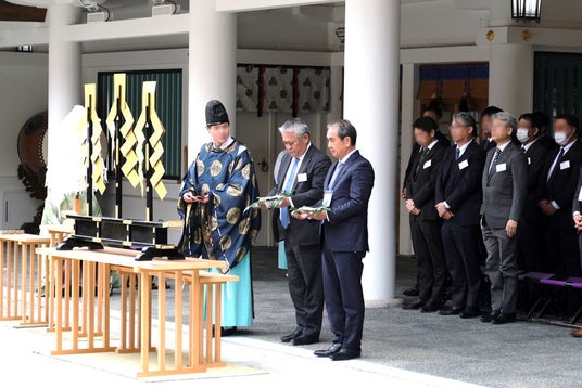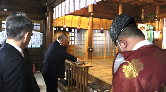 祈願祭では、日本管財と協力会会員の代表者が玉串を捧げるとともに、直来の儀を執り行い、1年間の健康と安全を祈念しました。