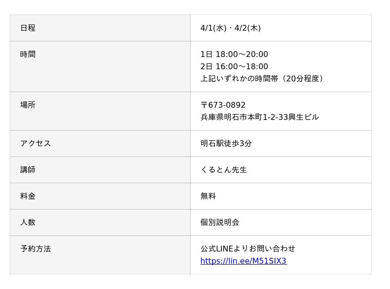 占い師養成CAMPは毎週オンラインで説明会を行っておりますが、このたび明石校で直接個別説明会を行います。