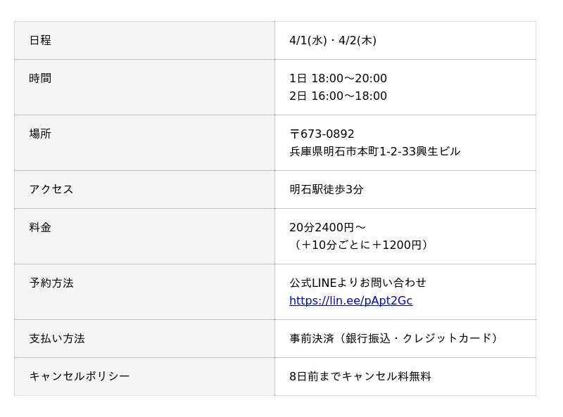【占い師養成CAMP明石校】説明会と対面鑑定のお知らせ