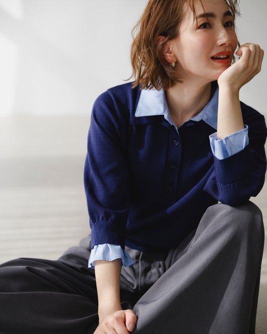 ワードローブの定番、カーディガンは襟付きを選んで品よくアップデート