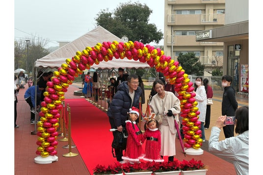 学生はフィールドワークを通じて、車両の通行を抑制し、歩行者や自転車が安心して通行できる赤いアスファルトで整備された生活道路「赤道(あかみち)」が、神戸市須磨区・名谷エリアの大きな特徴であると考えました。また、自身の出身地でさまざまな祭りが催され、それを誇りに感じている学生は、ニュータウンである名谷エリアには祭りがないことに着目し、祭りを開催すること、かつ会場はエリアの特徴である「赤道」とすることがシビックプライド醸成のキーになると考えました。そこで、2025年12月21日(日)に「名谷赤道故郷祭(みょうだにあかみちふるさとまつり)」を開催しました。当日は屋台や縁日、スタンプラリー、仮装コンテストなど、子どもを含め地域の方が楽しめる企画を実施しました。