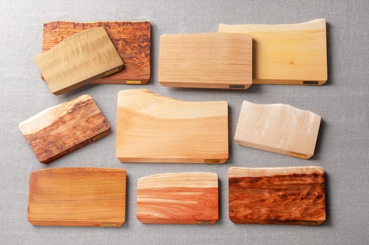 素材: 国産天然木(杉杢、桜、朴、欅、榧、檜など)、真鍮プレート